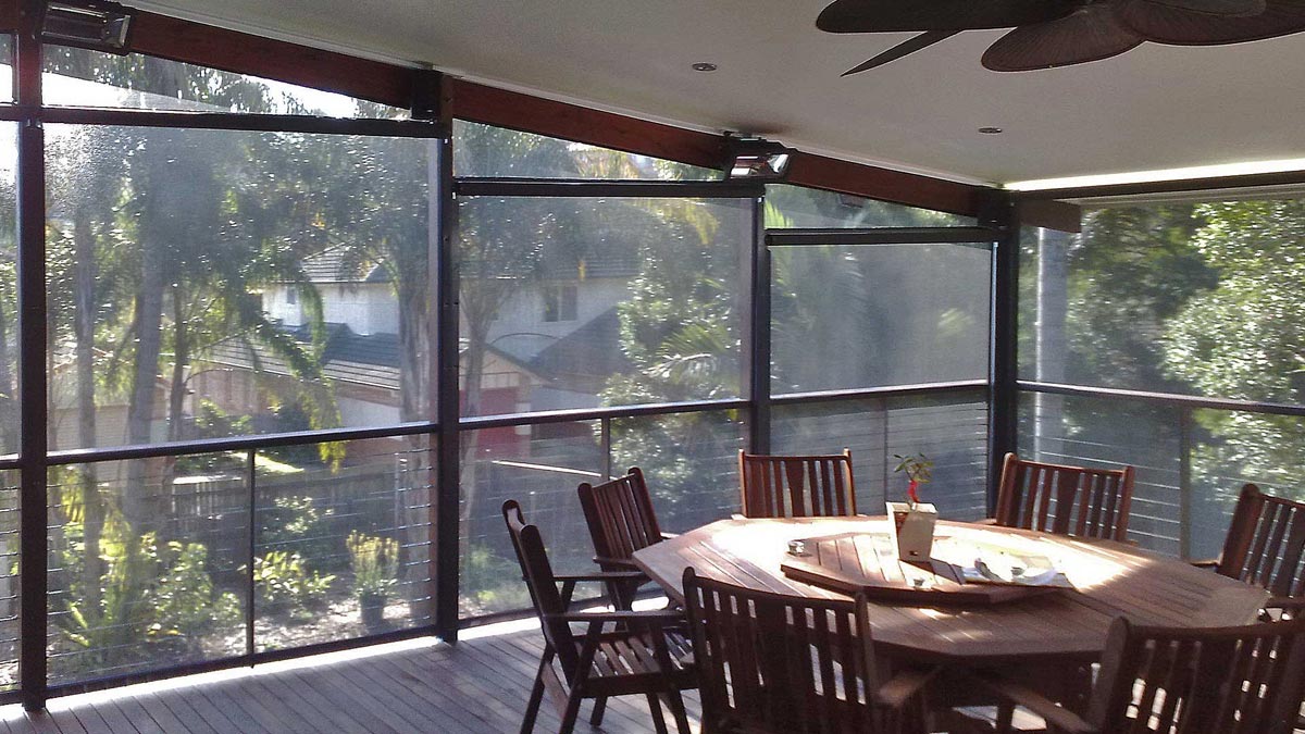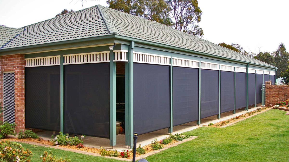 Straight drop awnings are perfect for verandas and patios, helping to filter light, protect from harmful UV rays, keep bugs out and reduce wind exposure